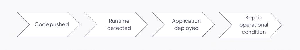 Push your code, the runtime is detected automatically, and the app starts with no complex files to write.